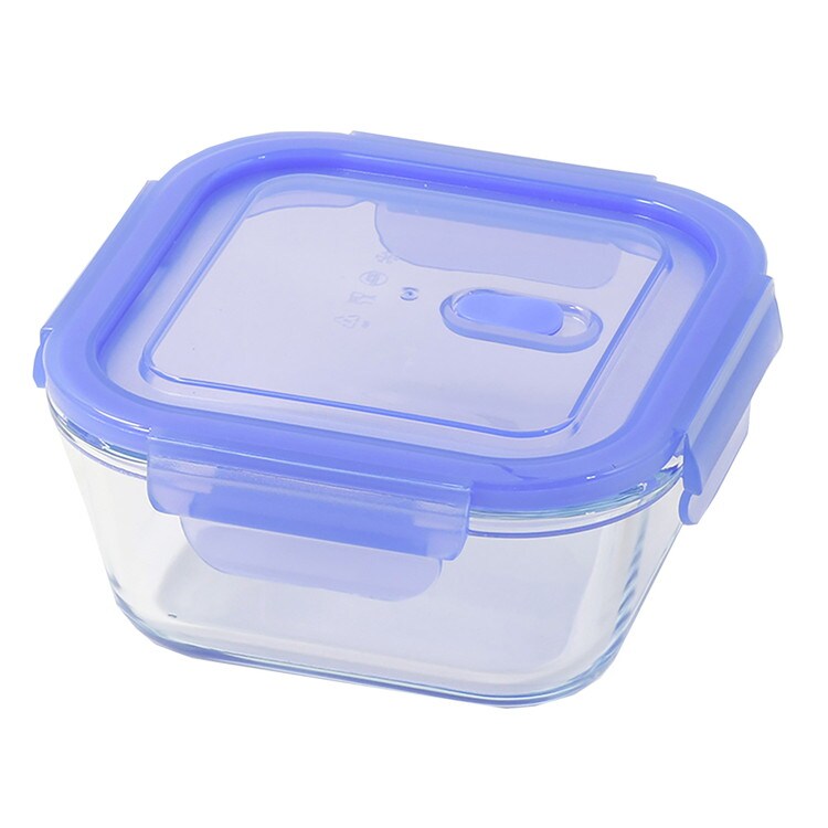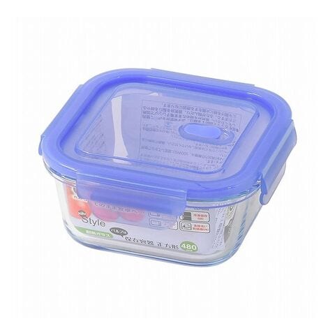 リバティーコーポレーション 耐熱ガラス バルブ付 保存容器 正方形 480ml クリアブルー LD-468 NewStyle