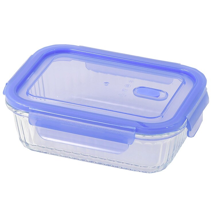 リバティーコーポレーション 耐熱ガラス バルブ付 保存容器 長方形 590ml クリアブルー LD-470 NewStyle