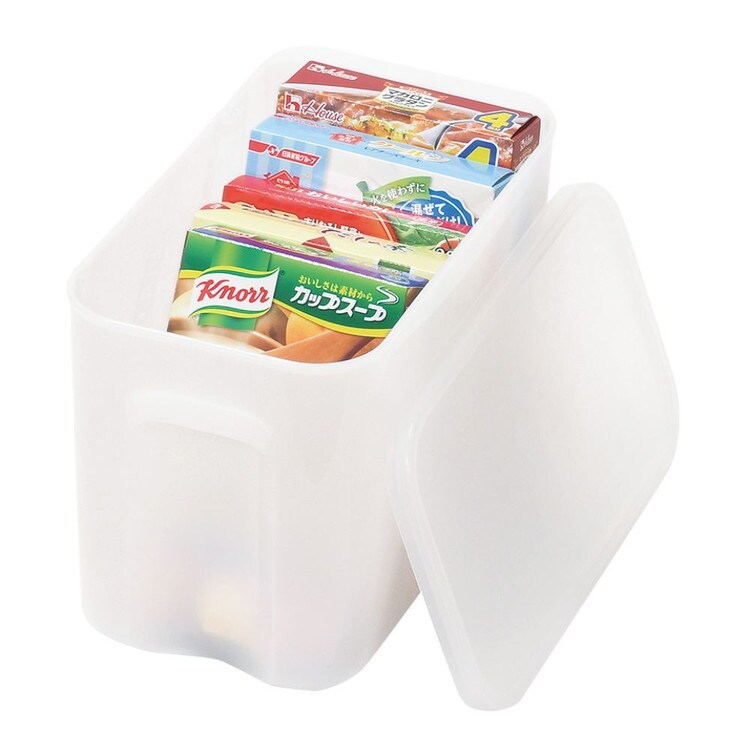 クリア・ホワイト・ワームグレーの3色展開シンプルで使う場所を選ばない収納ケース。ソフトな素材で扱いやすい。食品のストックから日用品・おもちゃの収納まですっきり片付く。両サイドに持ち手が付いているので、収納した際も取り出しやすい。フラットな形状の蓋付なので、スタッキング可能で便利です。