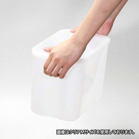 クリア・ホワイト・ワームグレーの3色展開シンプルで使う場所を選ばない収納ケース。ソフトな素材で扱いやすい。食品のストックから日用品・おもちゃの収納まですっきり片付く。両サイドに持ち手が付いているので、収納した際も取り出しやすい。フラットな形状の蓋付なので、スタッキング可能で便利です。