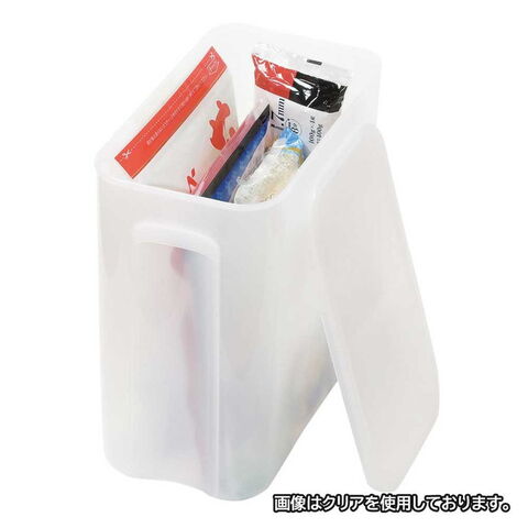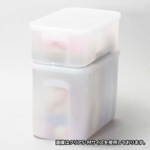 クリア・ホワイト・ワームグレーの3色展開シンプルで使う場所を選ばない収納ケース。ソフトな素材で扱いやすい。食品のストックから日用品・おもちゃの収納まですっきり片付く。両サイドに持ち手が付いているので、収納した際も取り出しやすい。フラットな形状の蓋付なので、スタッキング可能で便利です。