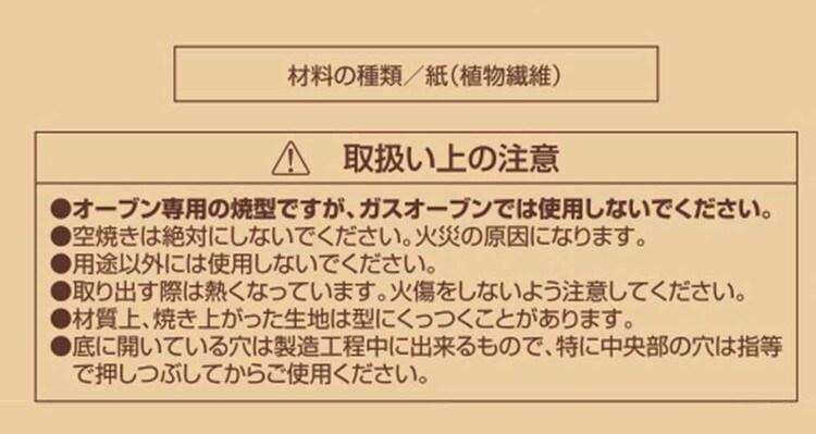 ●オーブン専用の焼型ですが、ガスオーブンでは使用しないでください。
