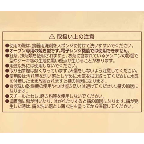 ※本製品は、お手入れしやすいようふっ素樹脂塗膜加工が施されておりますが、生地が型にくっつかないものではありません。ご使用の際は、下記いずれかの方法でご使用ください。