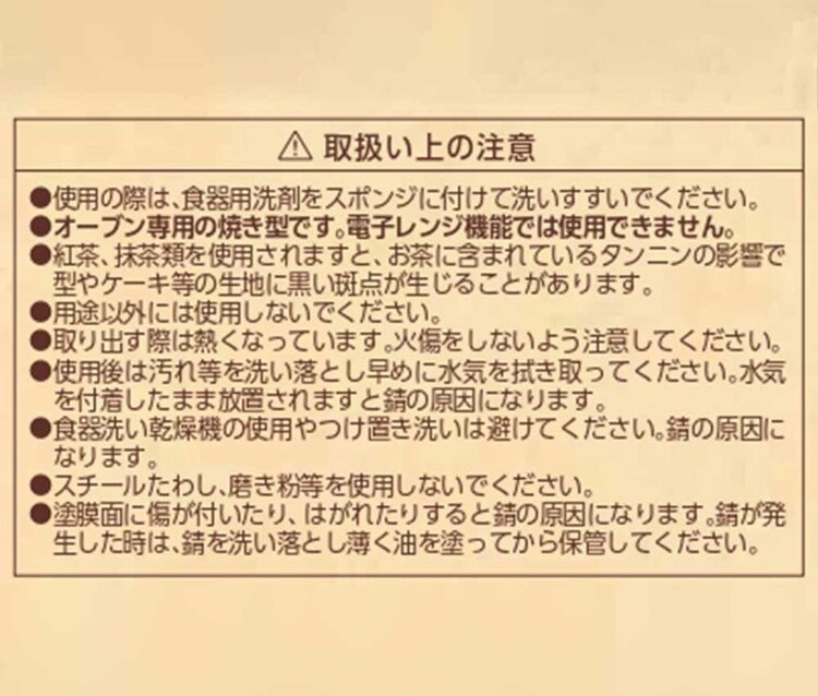 ※本製品は、お手入れしやすいようふっ素樹脂塗膜加工が施されておりますが、生地が型にくっつかないものではありません。ご使用の際は、下記いずれかの方法でご使用ください。