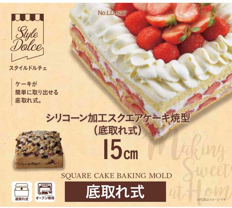 Style Dolce ケーキ型 15cm スクエア 底取れ式 シリコン加工 製菓用品 LD-527 製菓 お菓子作り スイーツ バレンタイン