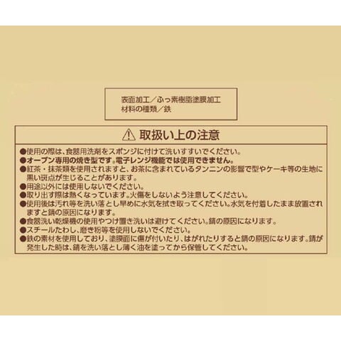 こびりつきにくく、お手入れが簡単なふっ素樹脂加工のタルト型。