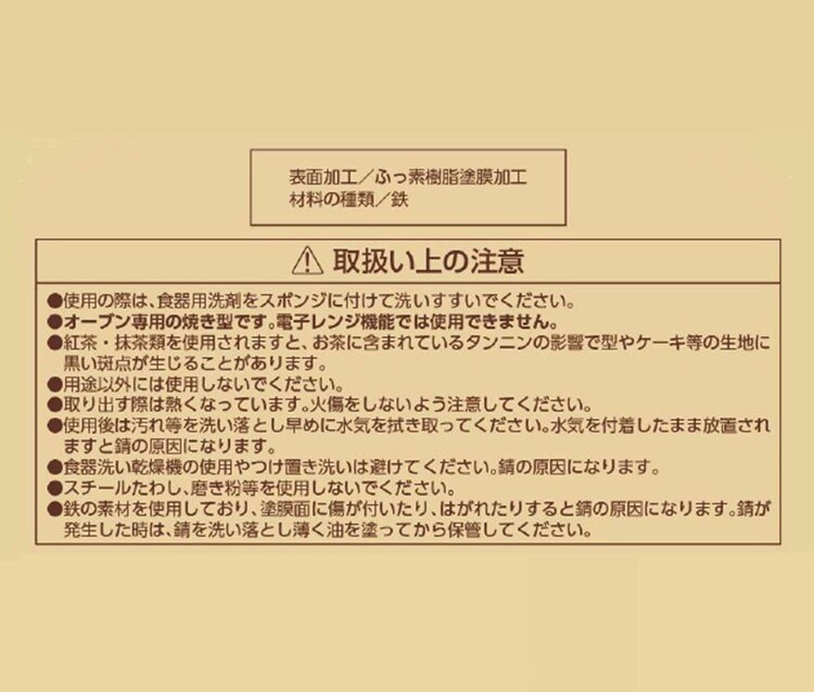 こびりつきにくく、お手入れが簡単なふっ素樹脂加工のタルト型。