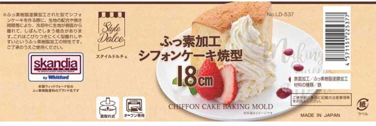 Style Dolce 日本製 シフォンケーキ焼型 18cm ケーキ型 底取れ式 ふっ素加工 製菓用品 LD-537 製菓 お菓子作り スイーツ バレンタイン