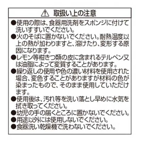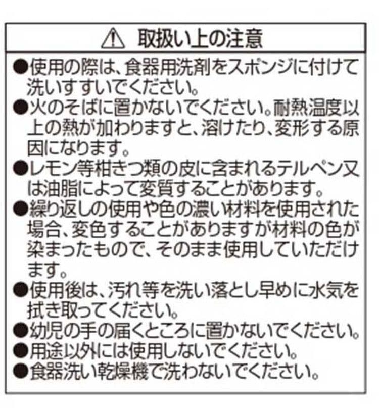 ハンドル・原料樹脂/スチロール樹脂、耐熱温度/70度