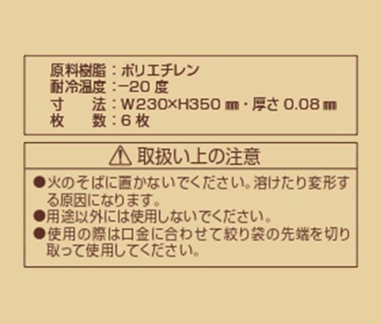絞り袋・原料樹脂/ポリエチレン、耐冷温度-20度、