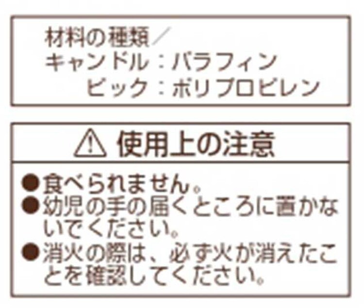 材料の種類・キャンドル/パラフィン、ピック/ポリプロピレン