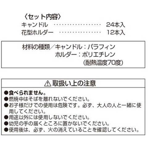キャンドル外径0.5×高さ6cm 24本で24g ホルダー外径1.5×高さ1.5cm 12個で1.5g