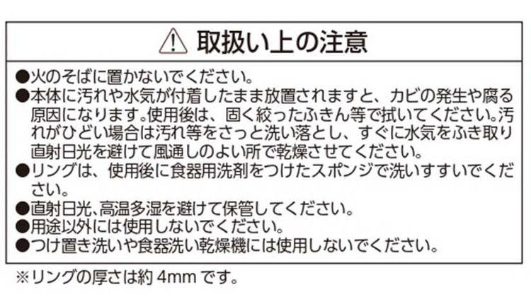 材料の種類/本体:天然木、リング:熱可塑性エラストマー(耐熱温度80度)