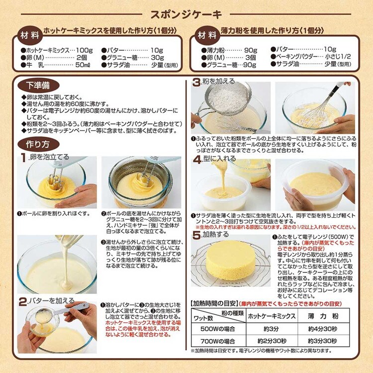 生地を流し入れてレンジでチン!スポンジケーキが簡単に作れる。