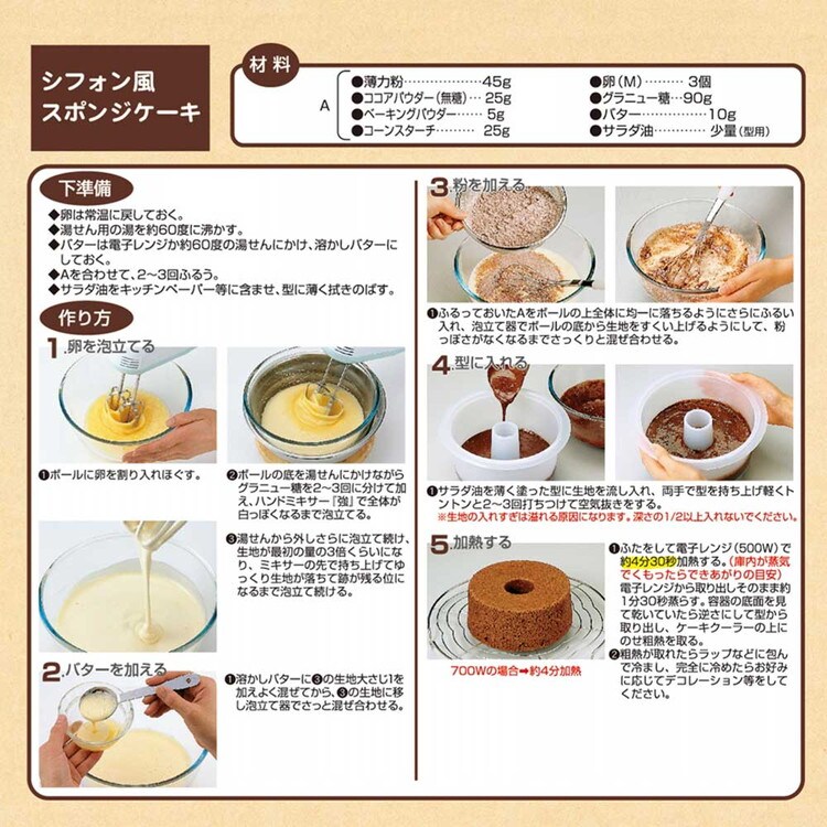生地を流し入れてレンジでチン!スポンジケーキが簡単に作れる。