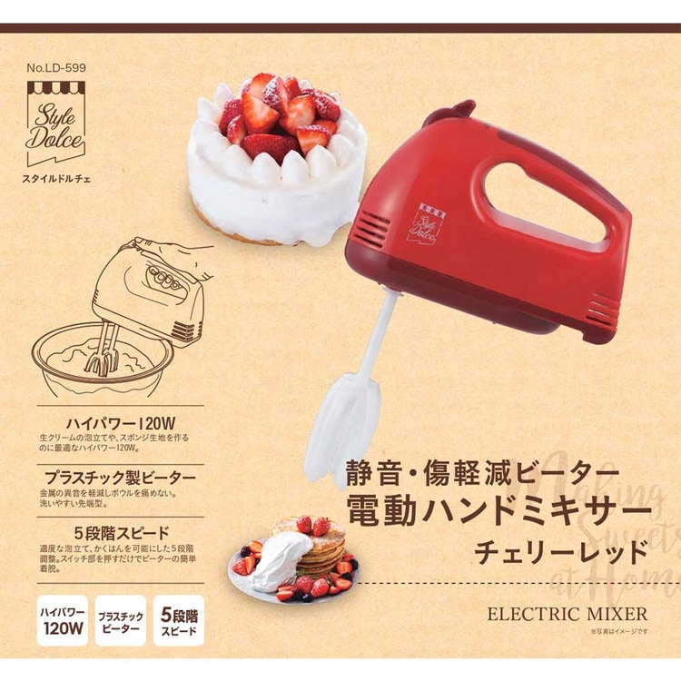Style Dolce ハンドミキサー 電動 泡立て器 静音 傷軽減 チェリーレッド 製菓用品 LD-599 製菓 お菓子作り スイーツ バレンタイン