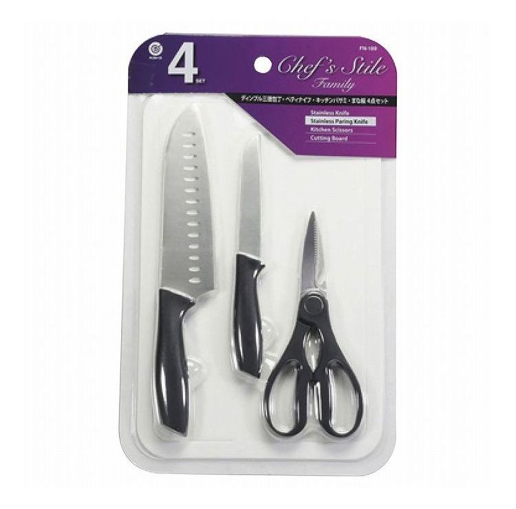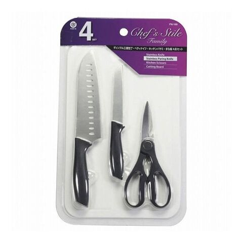 パール金属 三徳包丁 ペティナイフ キッチンバサミ まな板 4点セット FN-169 シェフズスティーレ ファミリー
