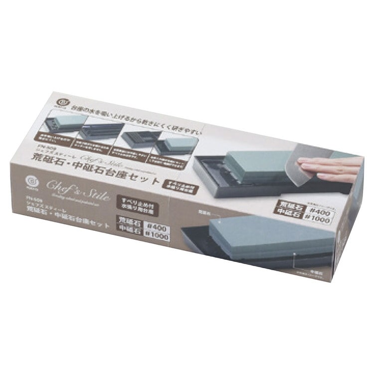砥石、台座、セット、粒度、中砥石、#1000、荒砥石、#400、仕上げ、包丁、研ぎ器、滑り止め付、使いやすい、吸水、乾きにくい、研ぎやすい、水張り、切れ味、修正、研磨