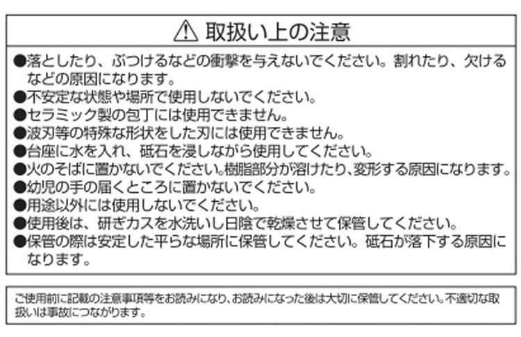 素材・材質:砥石/アルミナ質研磨材、粒度/荒砥石#400 中砥石#1000、台座/ABS樹脂、すべり止め/熱可塑性エラストマー
