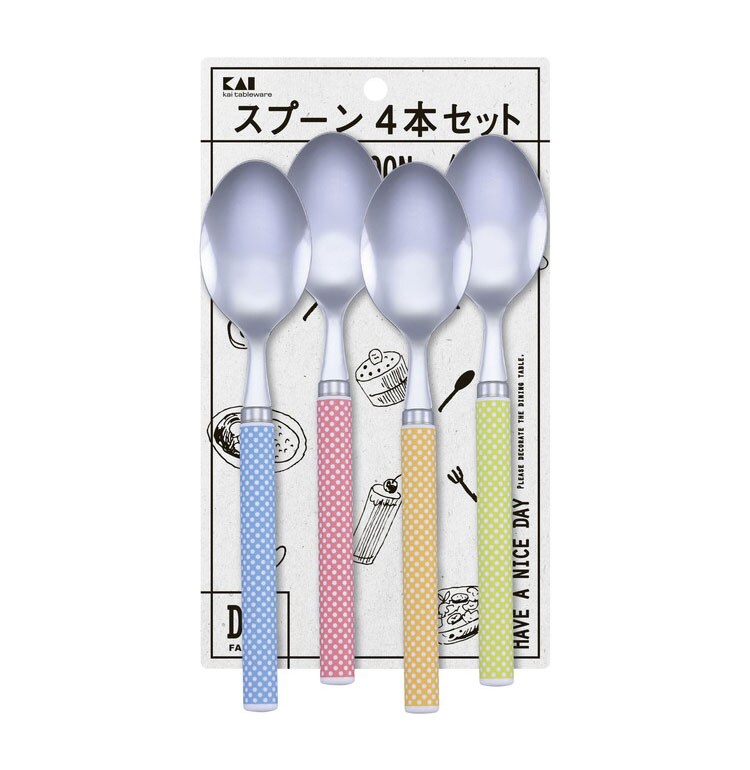 貝印 ドット柄 スプーンL 4本セット FA5175 洋食器 カトラリー 日本製 KAI