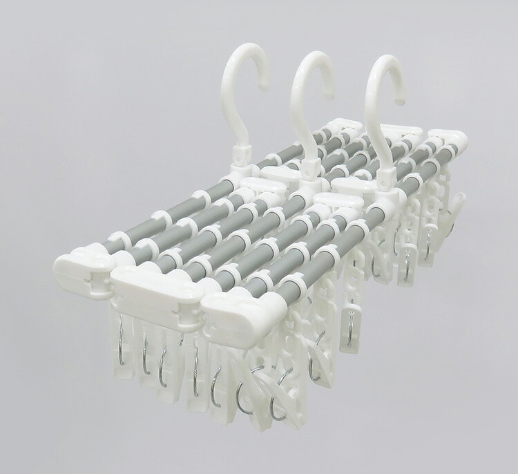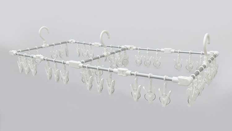 好きなサイズに伸縮できる角ハンガーです。フレームが自在に伸縮しますので、洗濯物の形状や干す場所に合わせて調整でき、コンパクトに収納できます。