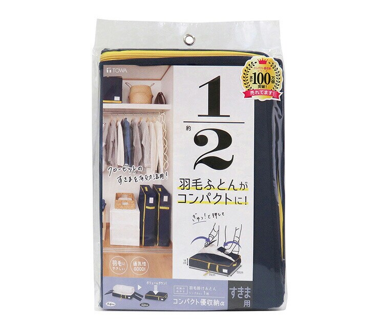 羽毛布団収納袋 立てられる布団ケース コンパクト優収納アルファ すきま用 ネイビー 85700 すきま収納 隙間収納 クローゼット収納 押入れ収納 押し入れ収納 東和産業【送料無料】