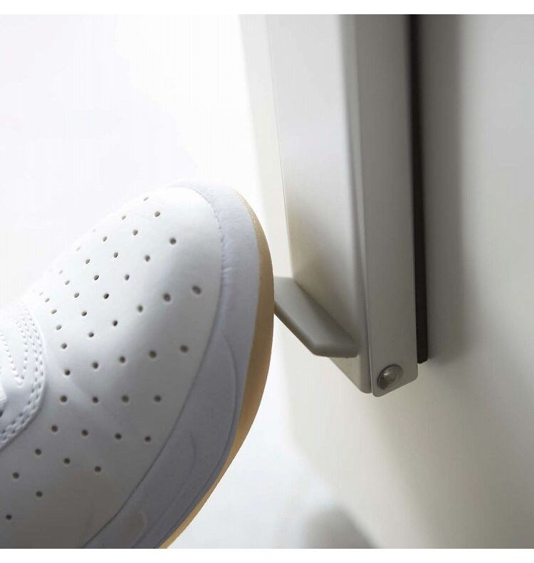 立ったまま操作できる便利な玄関ドアストッパー。