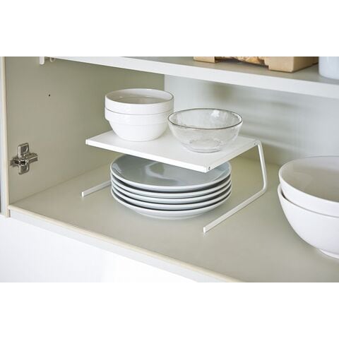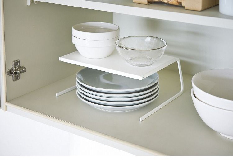 棚の中の食器類を出し入れしやすく有効活用!省スペースで便利な収納アイテム。