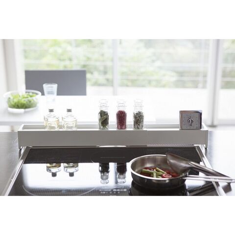 山崎実業 棚付き伸縮排気口カバー 幅44.5~82 プレート Plate ホワイト キッチン ラック コンロ奥 ラック カバー 伸縮式【送料無料】