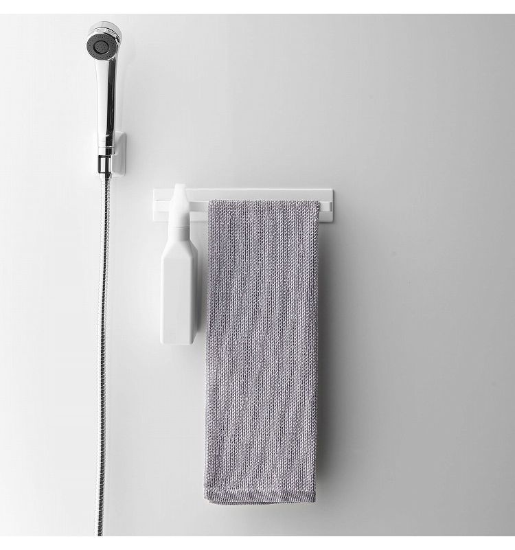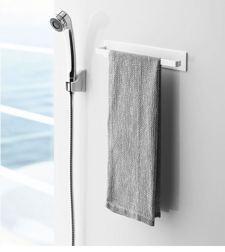 マグネットが付く浴室壁面に簡単取り付けのタオルハンガー。