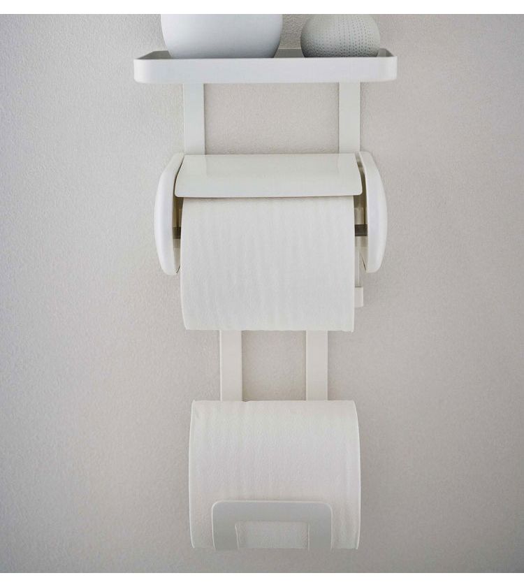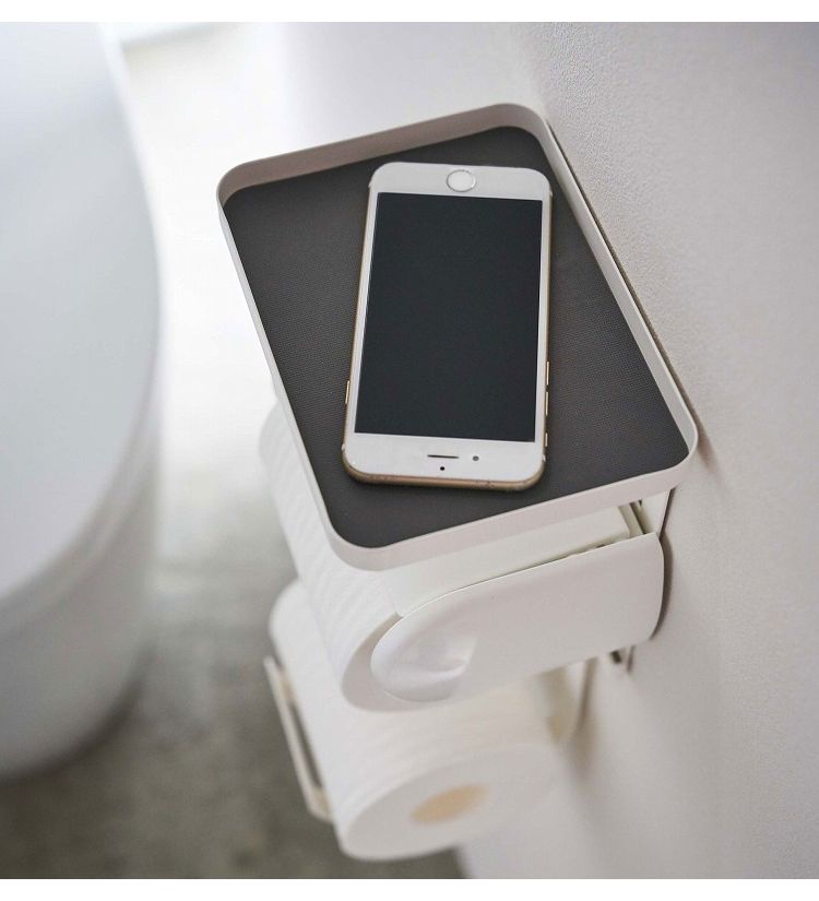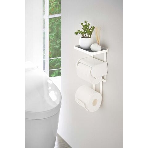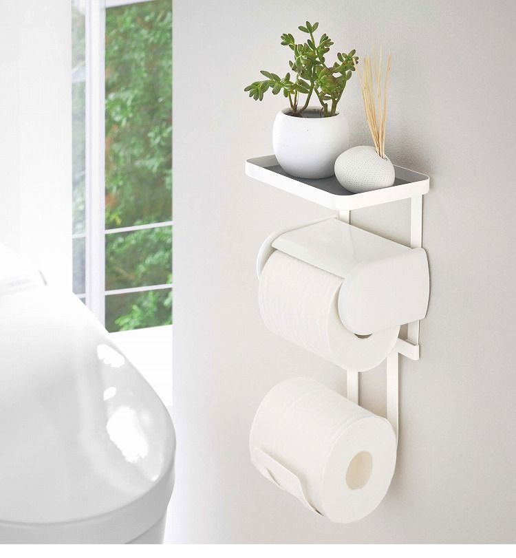 山崎実業 トイレットペーパーホルダー上ラック 2段 プレート Plate ホワイト【送料無料】