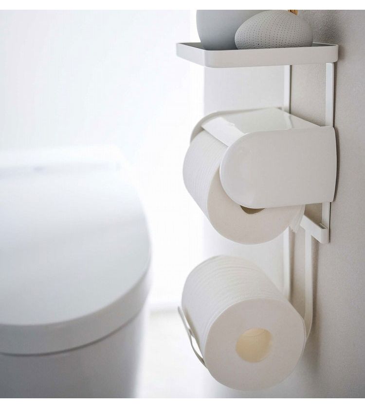 下部ホルダーにはトイレットペーパーロールのストックを収納可能。