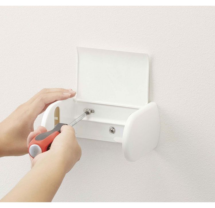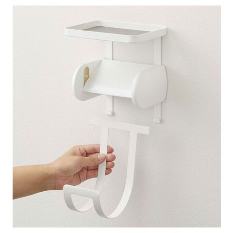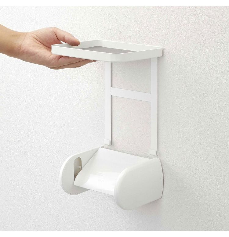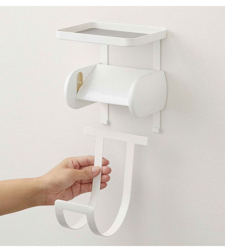 トイレットペーパーホルダーに差し込むだけの簡単取り付け!ホルダーの上下が収納スペースに。