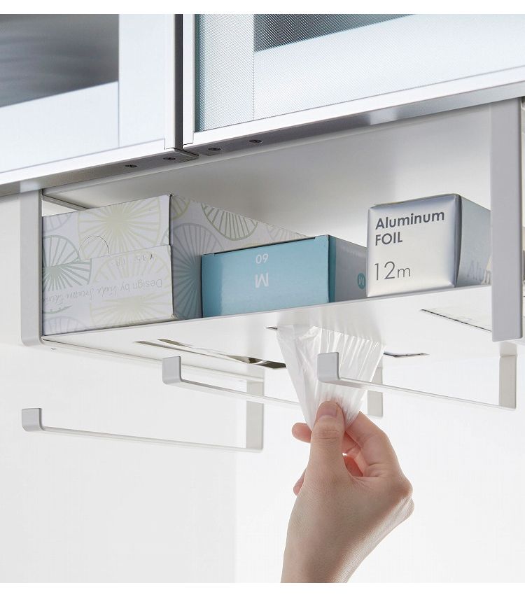 ポリ袋・ペーパーボックス用取り出し穴付きで下からサッと抜き取れます。