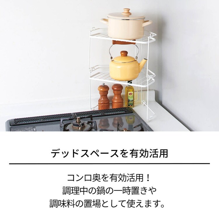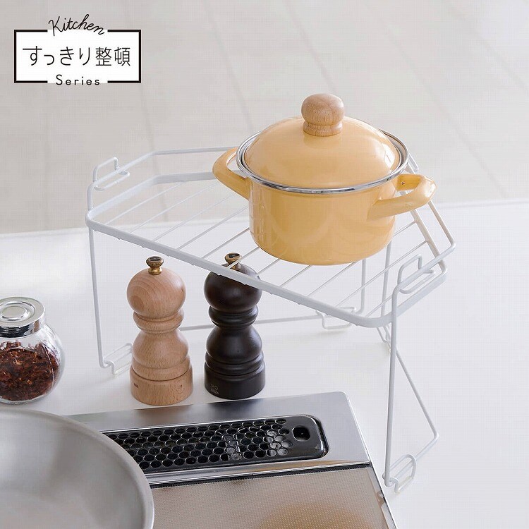 キッチン、コーナーラック、キッチンラック、収納ラック、収納、収納棚、コンロ周り、キッチン収納、シンクサイドラック、鍋、フライパン、台所用品、コンロ奥、鍋置き、一時置き、システムキッチン