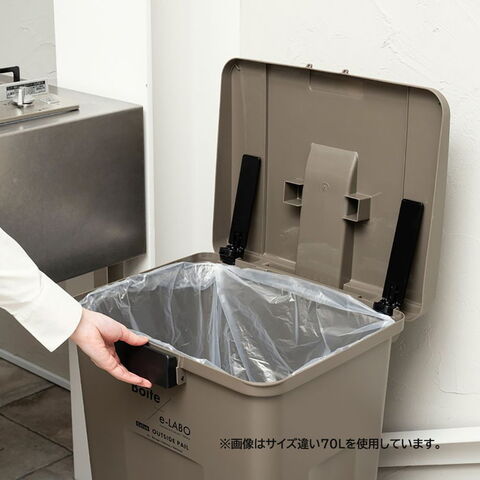 屋外で大活躍!ワンタッチで開閉可能なボイテ×イーラボシリーズロックを押すだけでフタが開き、フタを閉じると自動でロックされます。ロックが出来るので、倒れても散らからず安心です。ハンドル付きで移動がラクラク!ハンドルはフタの中央にあるので、片手持ちでも安定感があります。袋止めクリップでゴミ袋をしっかり取りつけ。重いゴミを捨てたときに袋ごと沈んでしまう心配も軽減されます。使用できる袋サイズ:65cm×80cm以上