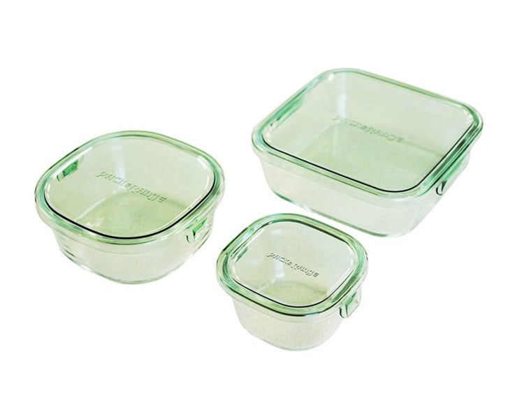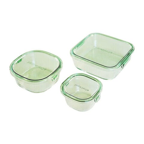 イワキ iwaki 耐熱ガラス 保存容器 グラスコンテナ 角型3点セット グリーン PS-PRN-3G1 電子レンジ対応 食洗機対応 シンプル