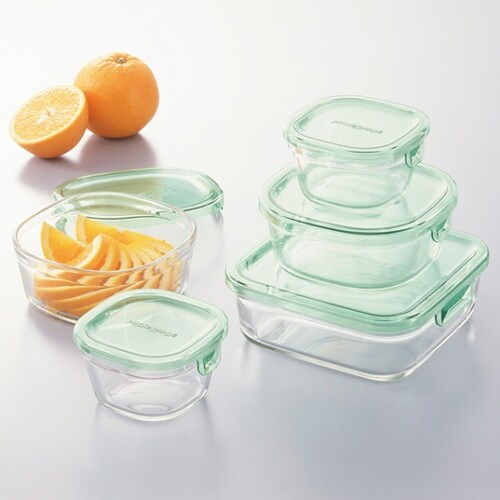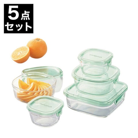 イワキ iwaki 耐熱ガラス 保存容器 グラスコンテナ 角型5点セット グリーン PSC-PRN-5G 電子レンジ対応 食洗機対応 シンプル【送料無料】