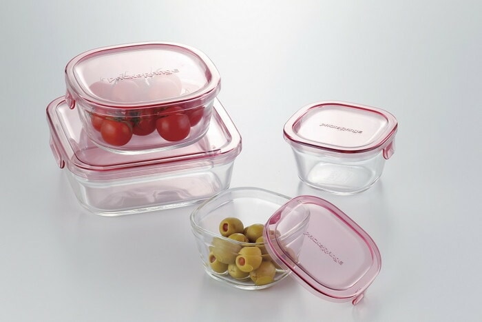 iwaki、イワキ、パック&レンジ、角型4点セット、ピンク、耐熱ガラス、保存、おしゃれ、常備菜、作り置き、浅い、もちより、冷蔵庫、電子レンジ、オーブン、耐熱皿、プレート、お菓子、製菓