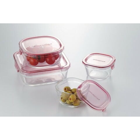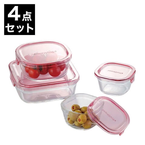 イワキ iwaki 耐熱ガラス 保存容器 グラスコンテナ 角型4点セット ピンク PSC-PRN4P1 電子レンジ対応 食洗機対応 シンプル【送料無料】