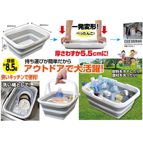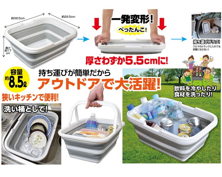 fold、wash、tub、たためる、収納、しゅうのう、バケツ、レジャー、防災、ぼうさい、水入れ、釣り、つり、洗濯、せんたく、浸け置き、つけおき、頑固、ガンコ、よごれ、汚れ、コンパクト、大容量、だいようりょう、持ち運べる、小さく、じゃばら、レジャー、アウトレット、非常、防災、水汲み、溜める、水、花火、防火、省スペース、折りたたみ、フック掛けできる、持ち手、弦あり、掃除、おそうじ、洗車