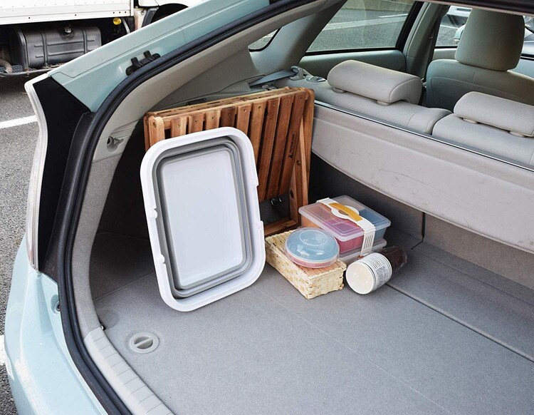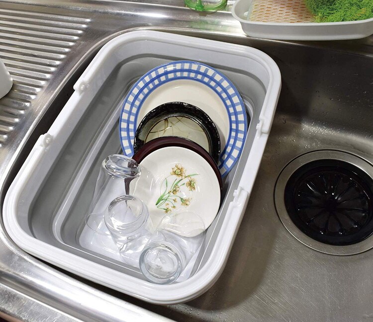 たたんで収納できる洗い桶。狭いキッチンで大活躍。