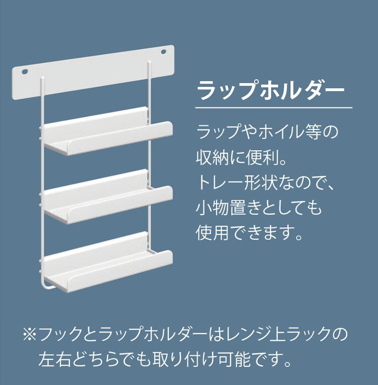 ※フックとラップホルダーはレンジ上ラックの左右どちらでも取り付け可能です。