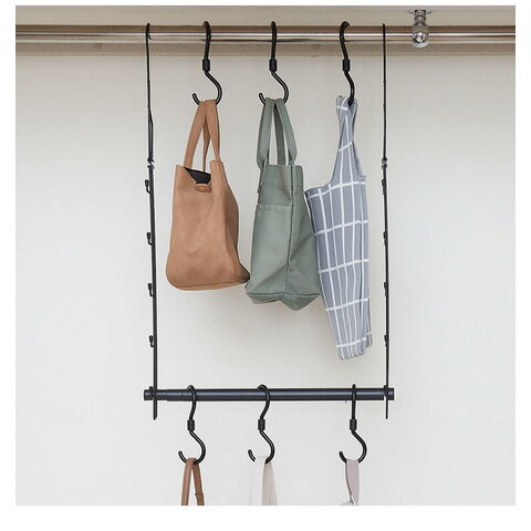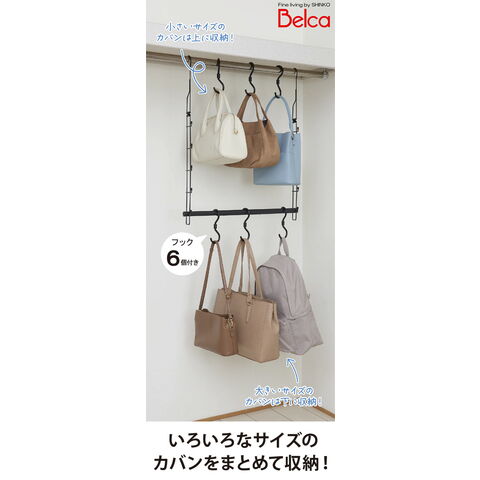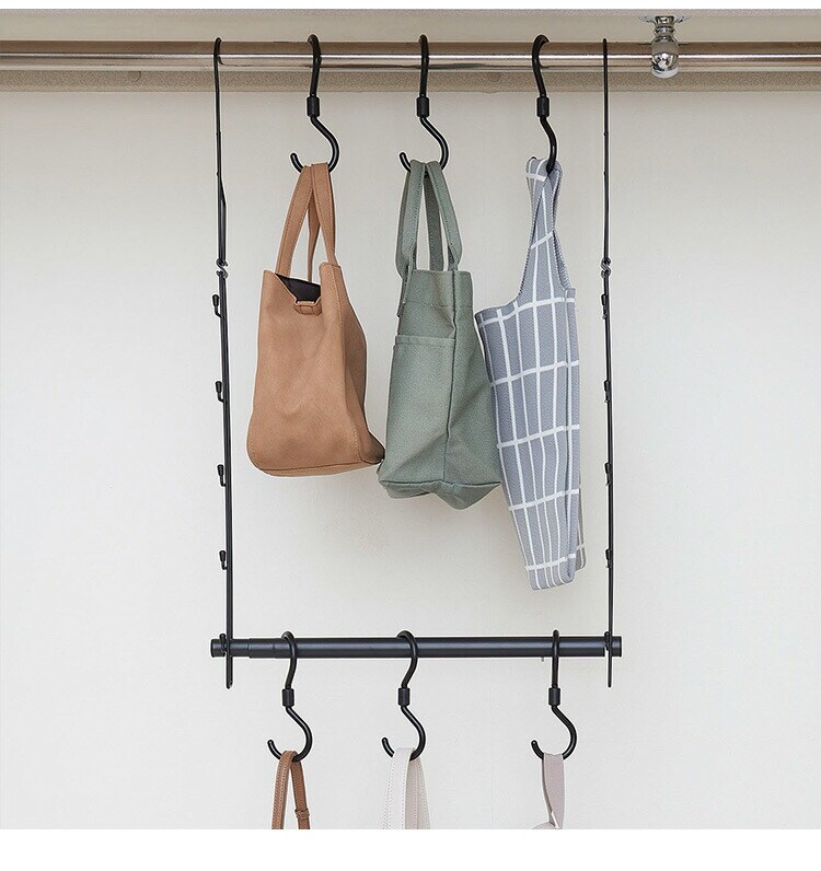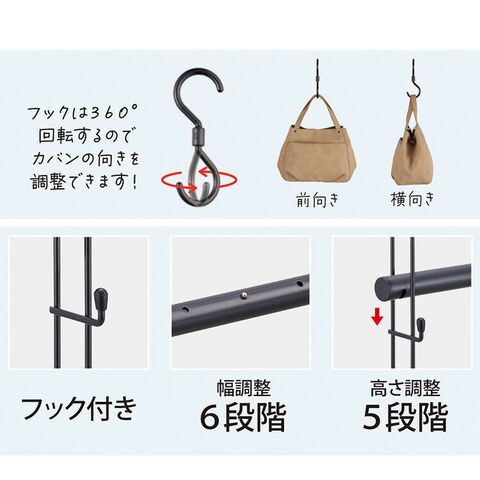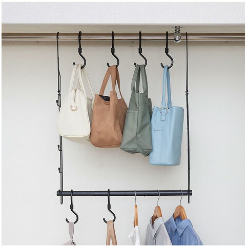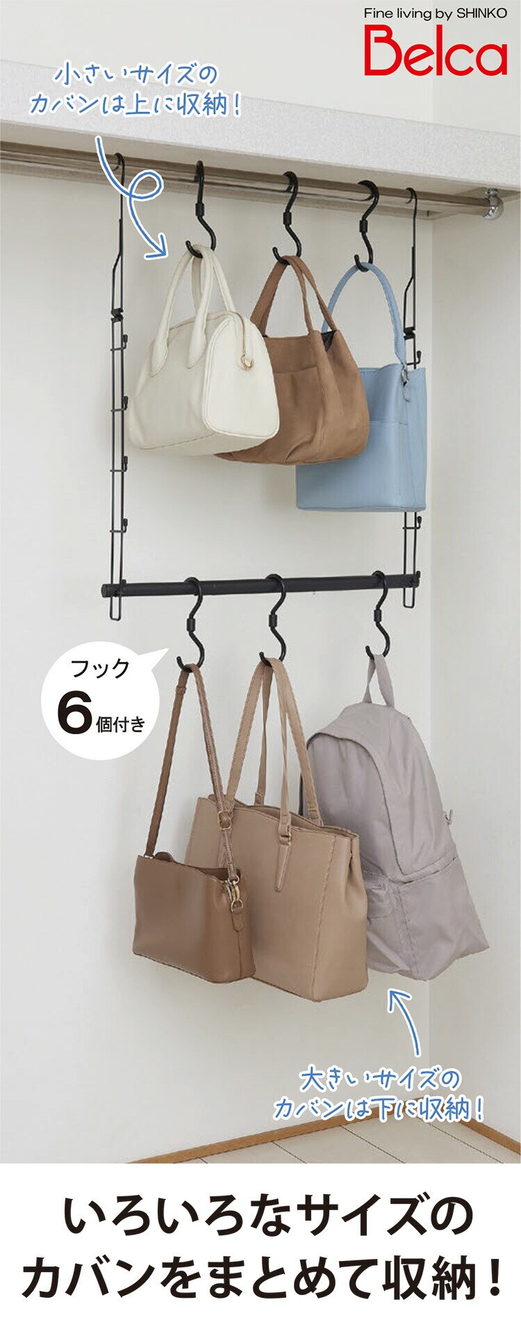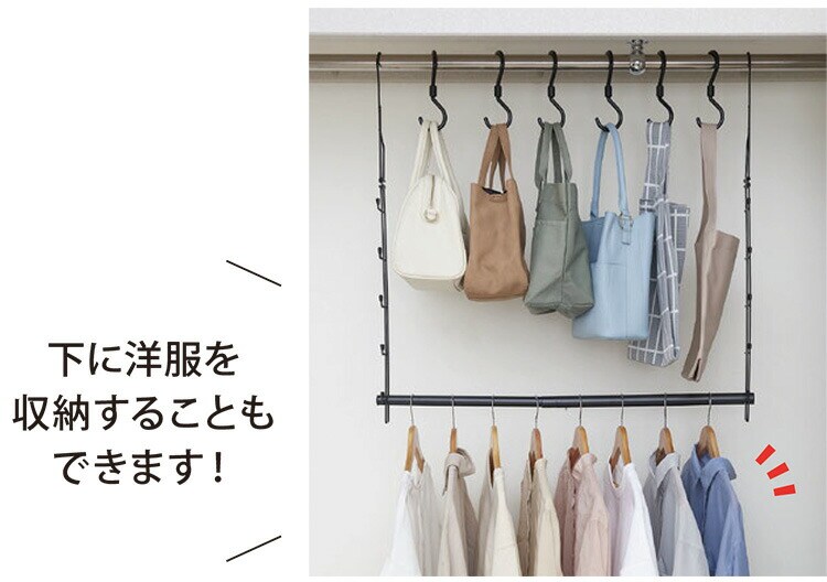 クローゼット 吊り下げハンガー カバン収納 伸縮タイプ 回転フック6個セット CH-KH 2段ハンガー ブランコ式 幅・高さ調節 フック付き 押入れ収納 押入収納 鞄収納 ハンガーラック【送料無料】