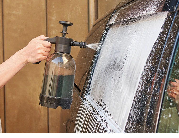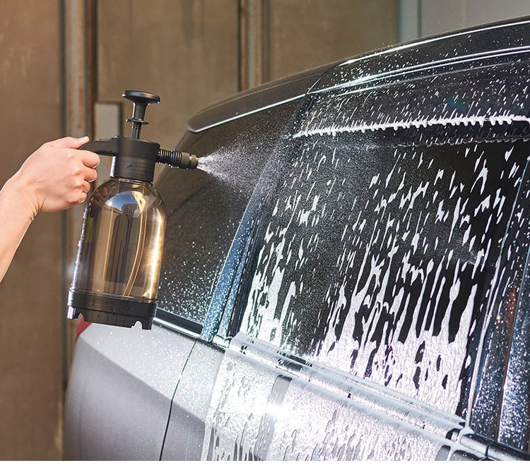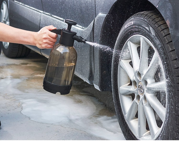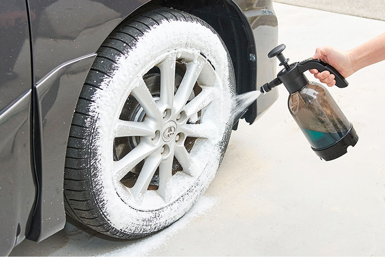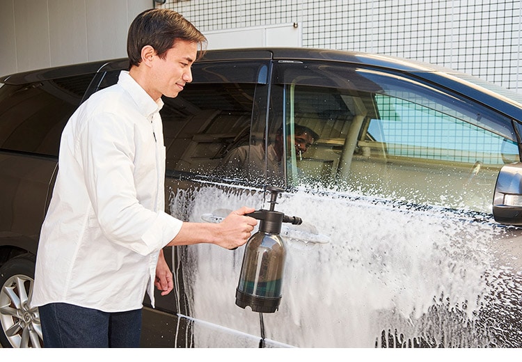 車掃除には、泡水で洗ってシャワーで流す。泥汚れなどにはジェットを。