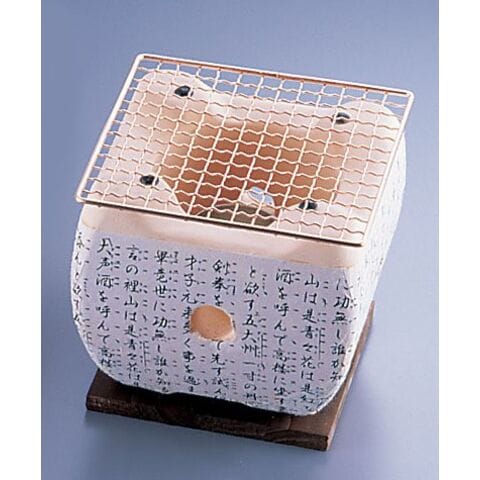 材質:本体(コンロ)/珪粘土、網/鉄(クロムメッキ仕上げ)、燃料受皿/鉄、敷板/天然木