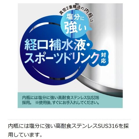 内瓶SUS316でスポーツドリンク対応