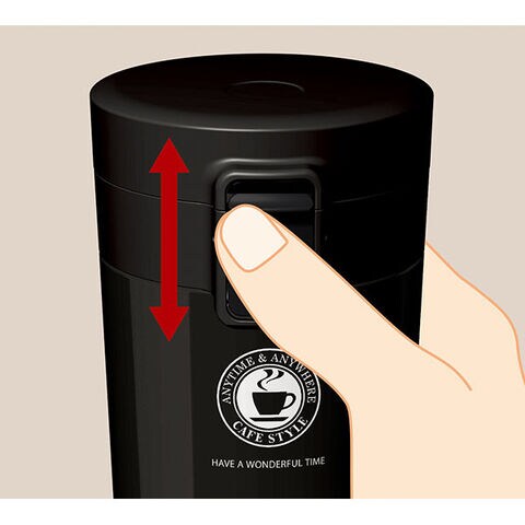 本体=ステンレス鋼(アクリル樹脂塗装)、飲み口・フタ・フタ本体=PP、ロックレバー=ABS樹脂、ストッパー=ポリアセタール、バネ・軸=ステンレス鋼、フタパッキン・飲み口パッキン=シリコーンゴム