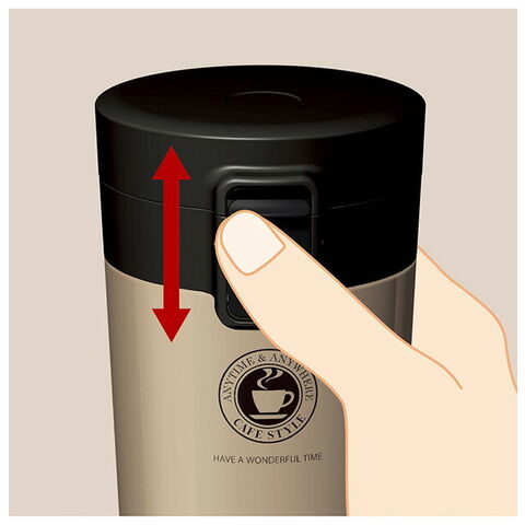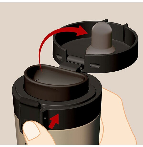 本体=ステンレス鋼(アクリル樹脂塗装)、 飲み口・フタ・フタ本体=PP、ロックレバー=ABS樹脂、ストッパー=ポリアセタール、バネ・軸=ステンレス鋼、フタパッキン・飲み口パッキン=シリコーンゴム
