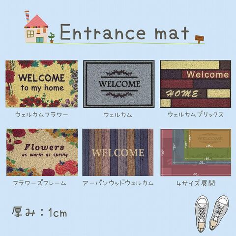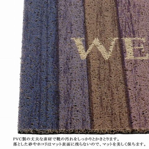 デザイン性が高くエントランスをおしゃれに演出する玄関マットシリーズPVC製の丈夫な素材で靴の汚れをしっかりとかきとります。落とした砂やホコリはマット表面に残らないのでマットを美しく保ちます。裏地付きだから落とした砂やホコリで床を汚しません。マットもずれにくいので安心。クッション性に優れ、足腰の負担を軽減します。水はけが良いので置き場所を選びません。玄関の内と外どちらでもお使いいただけます。ゆったりした大きな玄関に最適な60×90cmサイズ。